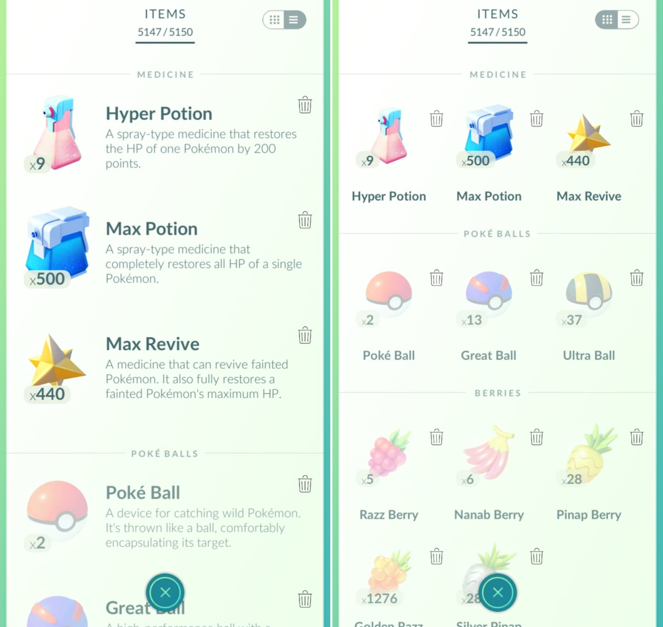 List of items in pokemon go.